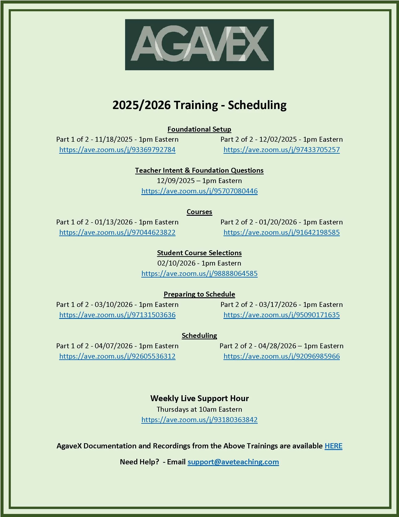Administrators Only: 2025–2026 AgaveX Scheduling Training Schedule
